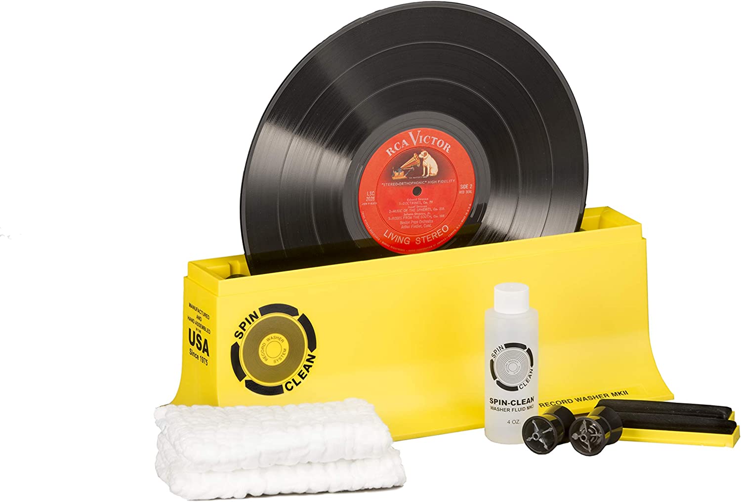 PROPRIETARY CLEANING SOLUTION - Spin-Clean operates using specially formulated alcohol-free, vinyl record cleaning fluid (4oz). Cleaning solution is a concentrate not viable on its own. It needs to be diluted in the base of the spin clean.